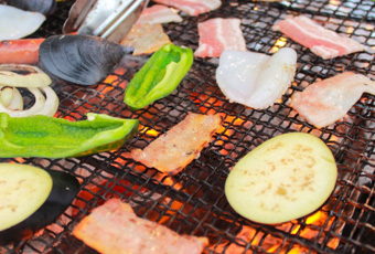 コスモス荘名物の手打ちそばは、地元のそば粉を地元の方が手打ちで製麺した地産の御蕎麦です。ほかにも山菜、野菜、スイカスィーツなど地元の農家から直に仕入れた食材を使ったおいしい料理がたくさんあります。